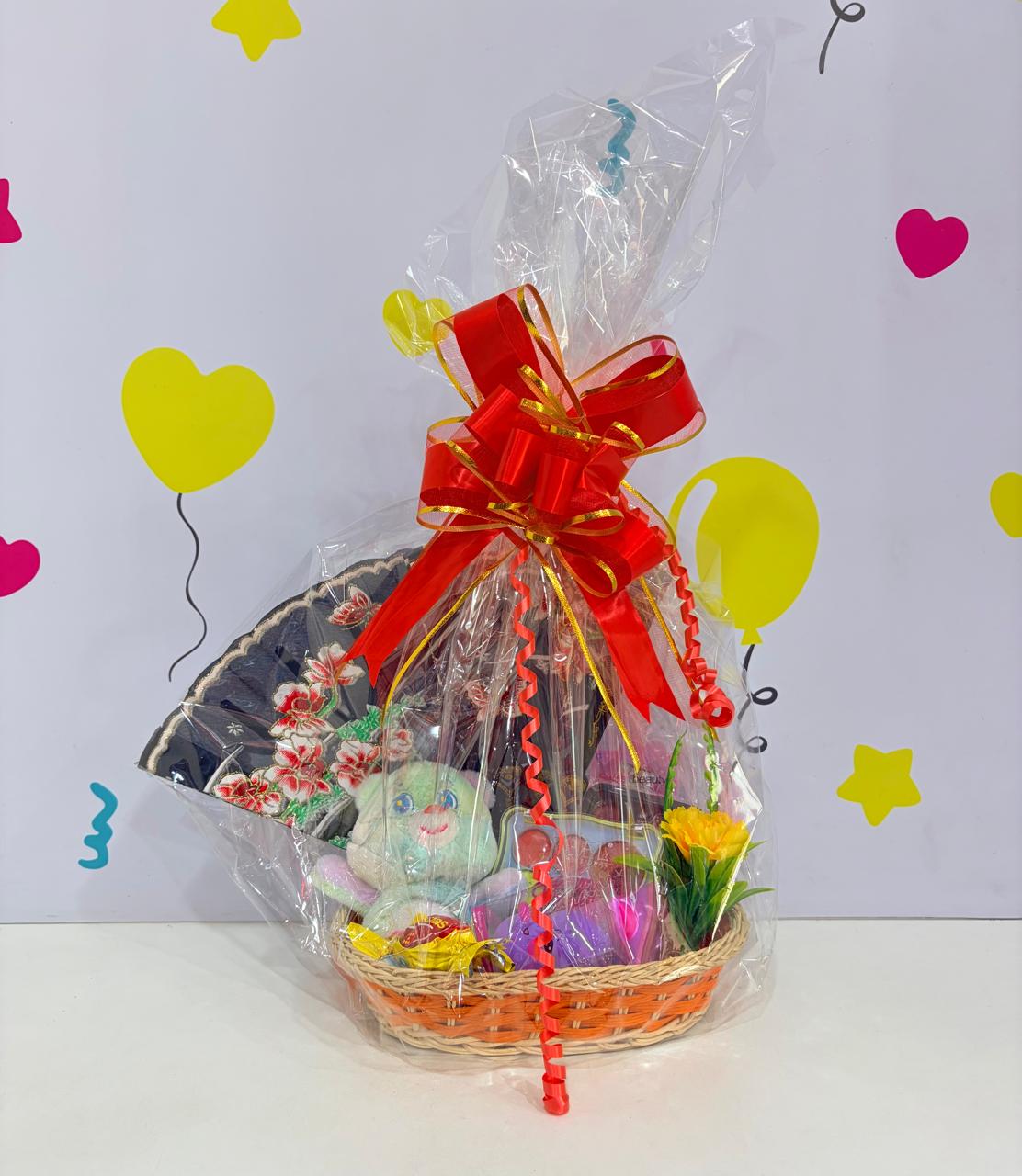 1 peluche pequeño + maquillaje + flor artificial + 1 chocolate