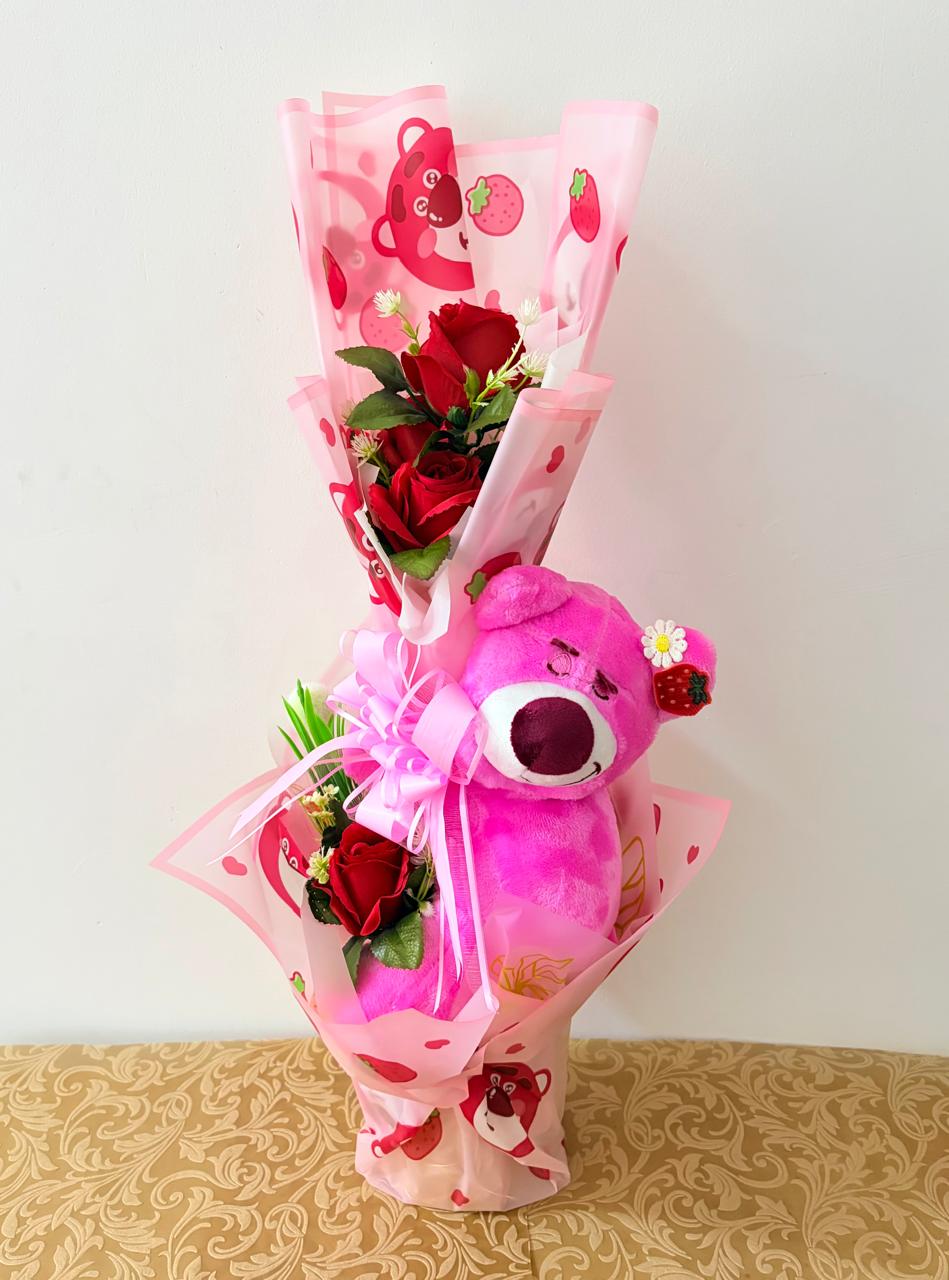 Peluche + flores artificiales