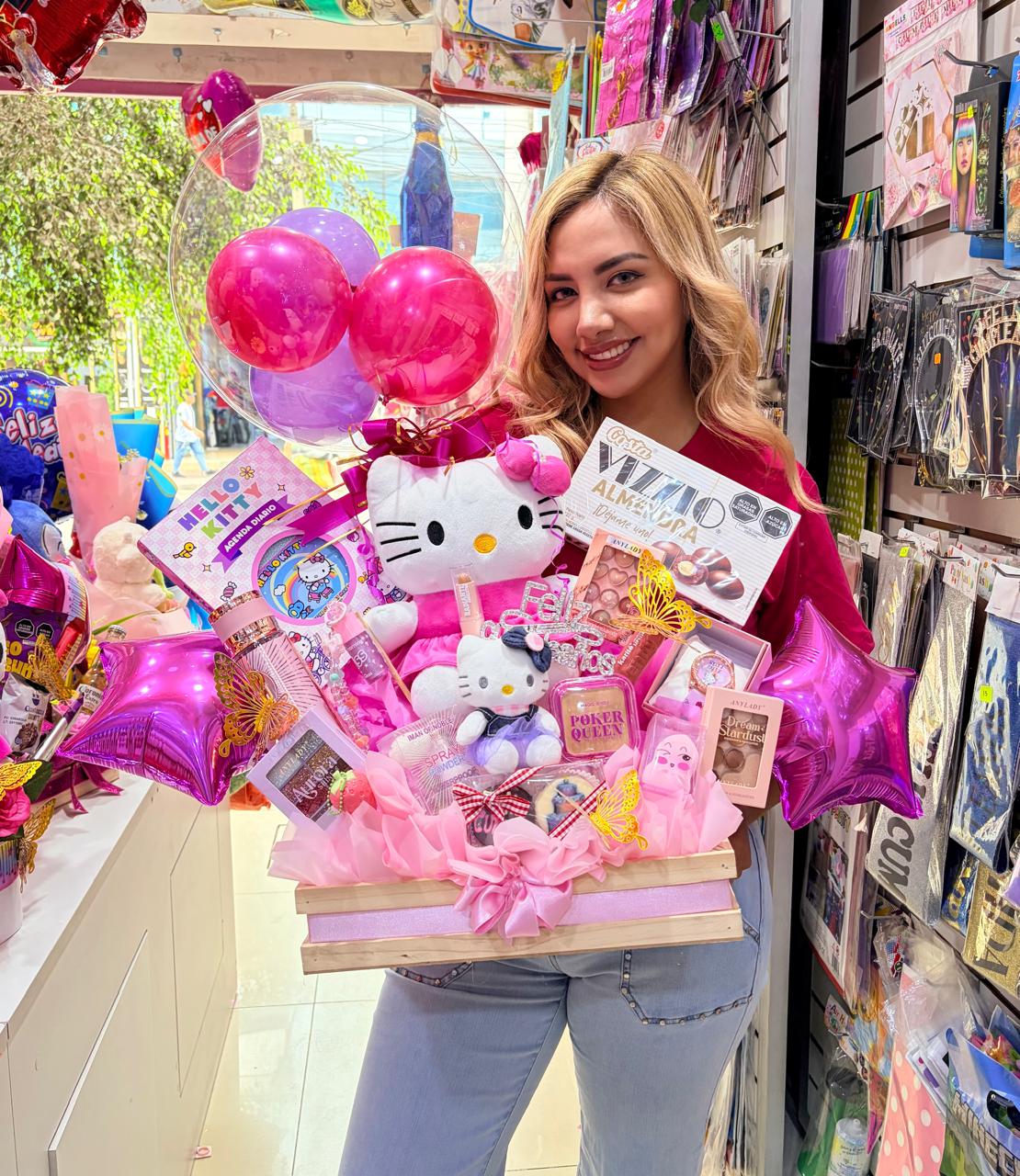 Peluche + globos + agenda + perfume + maquillaje + chocolates