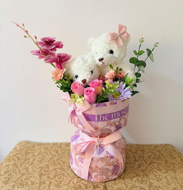 Peluche + flores artificiales