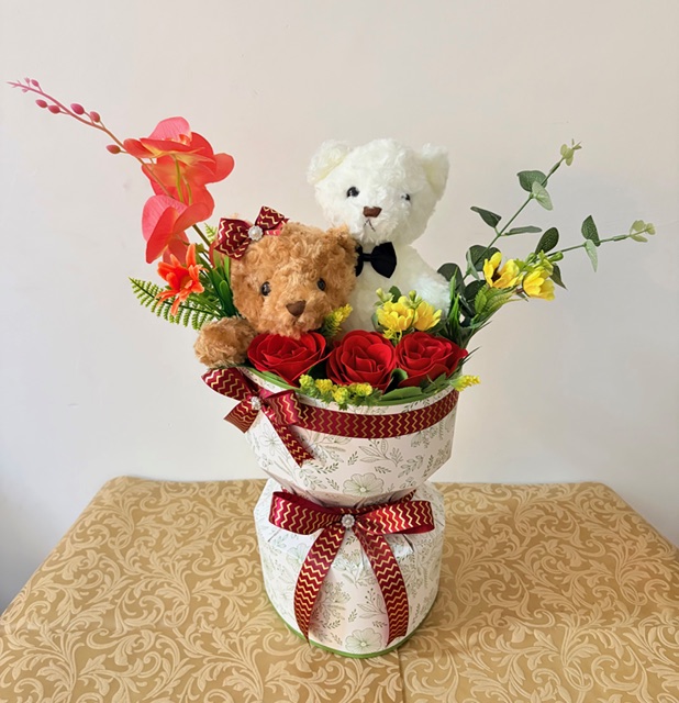 Peluche + flores artificiales