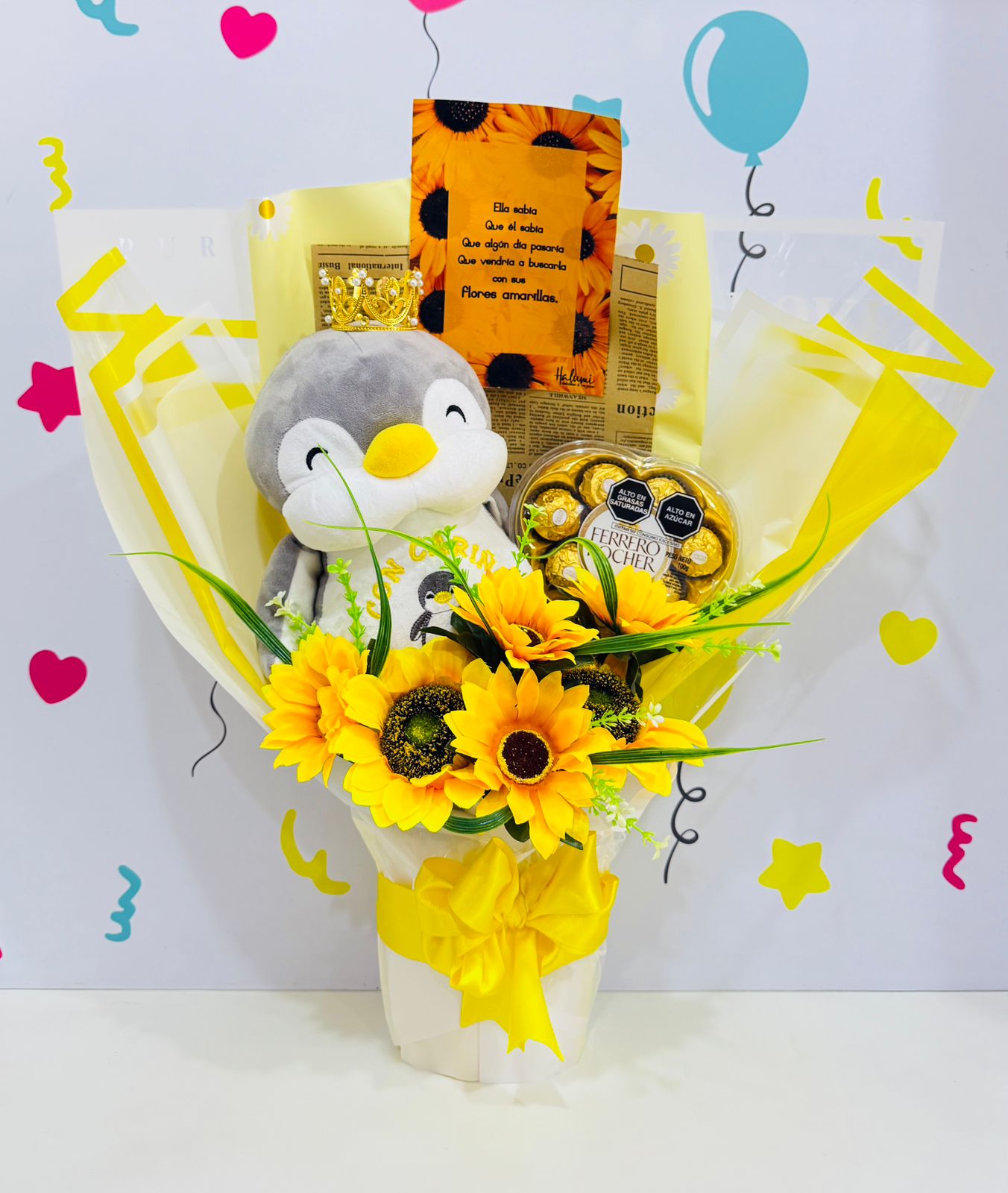 PINGÜINO FLORES AMARILLAS