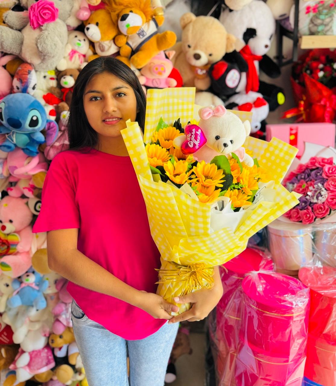 Flores artificiales + peluche