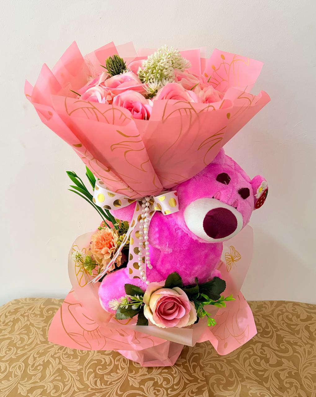 Peluche + flores artificiales